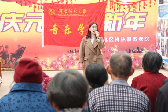 体育学院“阳光青年”志愿服务队赴唐江敬老院看望老人,给老人带去了大米、水果等慰问品,为老人献上了精彩的节目;赴唐江福利院与孩子们做游戏、辅导孩子功课、打扫卫生、赠送书籍等。音乐学院青年志愿者来到赣县区梅林镇敬老院开展文艺演出、赠送生活物品,给老人送去关爱和祝福。政法学院青年志愿者前往杨仙老年公寓看望孤寡老人,陪老人聊天,为老人打扫房间,与老人一起载歌载舞,敬老院里笑声不断。化工学院青年志愿者走进湖边镇涌泉敬老院,为老人打扫卫生、帮老人与亲人打电话、陪老人下棋、给老人放采茶戏、制作水果拼盘。商学院阳光青年志愿服务队走进赣州市曜阳敬老院开展志愿活动,为敬老院打扫卫生、陪老人聊天、和老人一起包饺子,给老人们的晚年生活带来温暖。