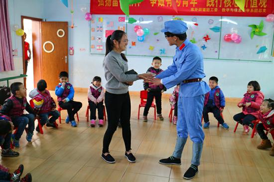 孩子们观赏雷锋精神宣讲小品表演。图片来源:赣州文明网