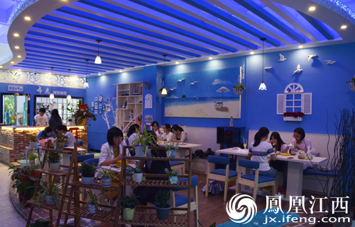 复古红砖吧台与贴边地砖,深蓝色吊顶,花篮和轮船装饰,舒缓的背景音乐,走进位于赣南师范大学校内的布鹿创客咖啡厅,便能感受到这股地中海风情。5月9日,赣南师范大学首家高校创客咖啡厅“布鹿创客咖啡厅”在校园的大学生人文科技中心大学生创业园开业。目前,已试营业一个月零7天的布鹿创客咖啡厅,由于提供的服务日趋完善,受到师生的广泛赞评。