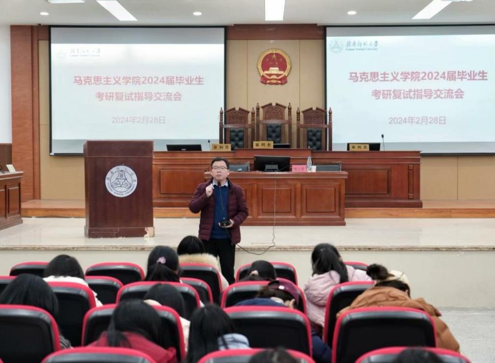 近日,马克思主义学院在第三教学楼模拟法庭举办考研复试指导交流会,2024届考研学子参加。
