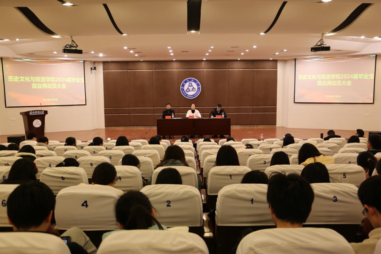 3月6日,历史文化与旅游学院在图书馆科报厅召开2024届毕业生就业再动员大会。学院党政班子成员,就业联络员,毕业班班主任及全体在校毕业年级学生出席会议。