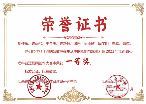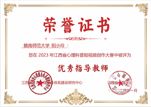 近日,2023年江西省心理科普短视频创作大赛圆满结束,我校获一等奖1项、二等奖2项、三等奖7项、优秀奖4项,教育科学学院教师阳小玲获评“优秀指导老师”。