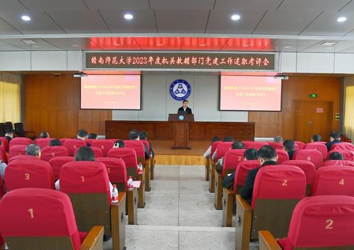 1月5日,机关教辅部门党建工作述职考评会在行政楼五楼报告厅举行,机关党委所属十六个党支部参加现场述职考核,离退休党委、图书馆直属党支部、继续教育与培训学院直属党支部、信息与教育技术中心直属党支部、中国共产党革命精神与文化资源研究中心党支部等5个党组织参加书面考核。