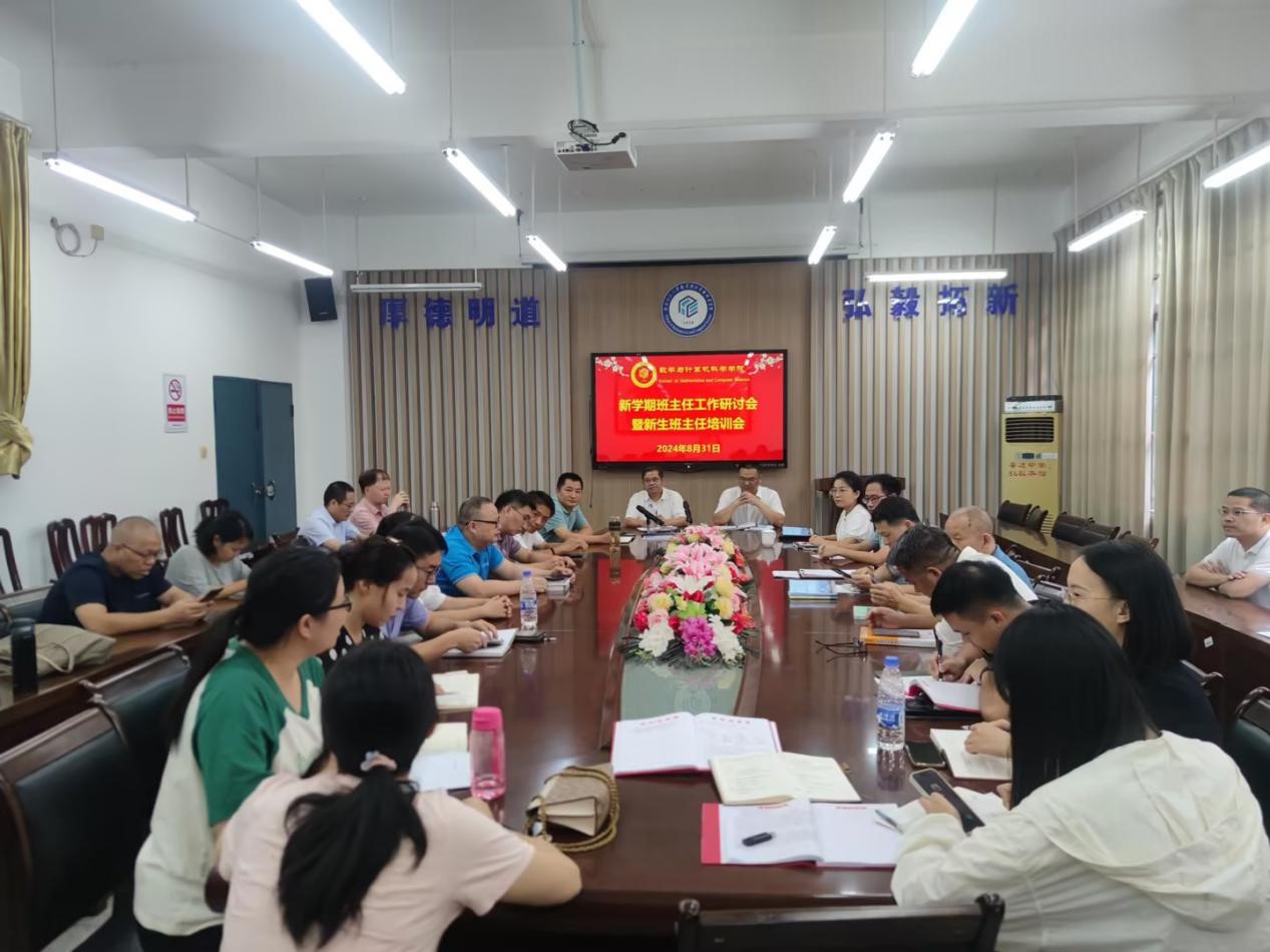 8月31日,数学与计算机科学学院在112会议室举行新学期班主任工作研讨会暨新生班主任培训会,学院领导班子、全体班主任参加。