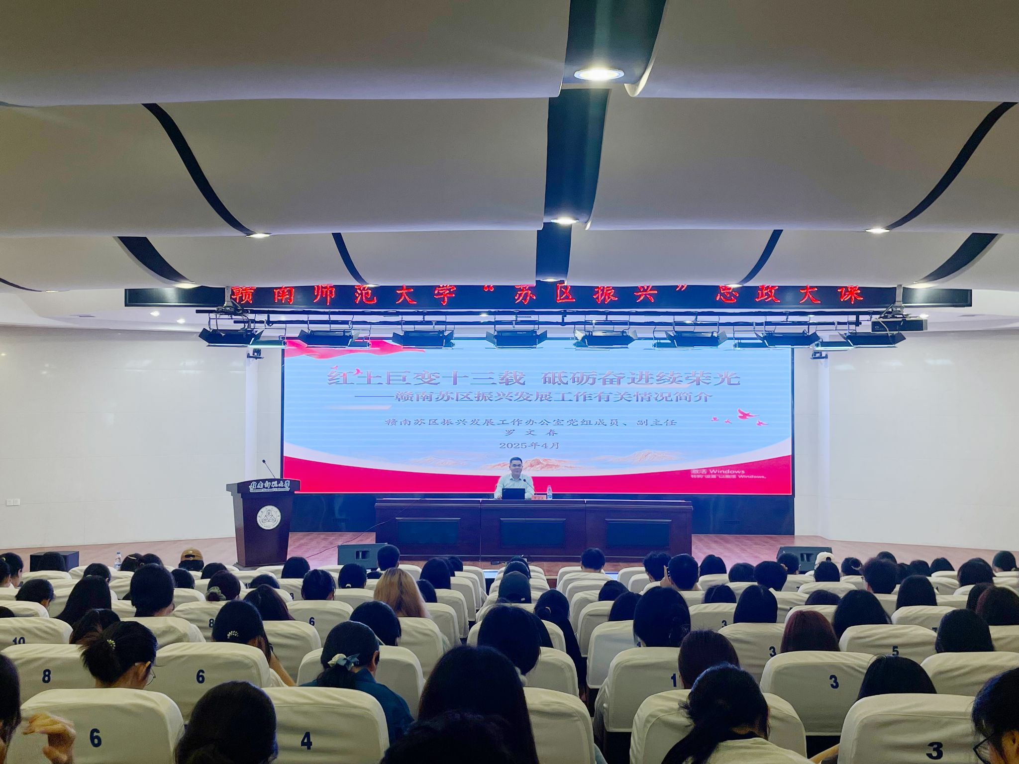 4月11日,我校首堂“苏区振兴”思政大课在图书馆科报厅开讲。赣南苏区振兴发展工作办公室党组成员、副主任罗文春以《红土巨变十三载砥砺奋进续荣光——赣南苏区振兴发展工作有关情况介绍》为题,为在场200余名同学带来了一场接地气的思政大课。