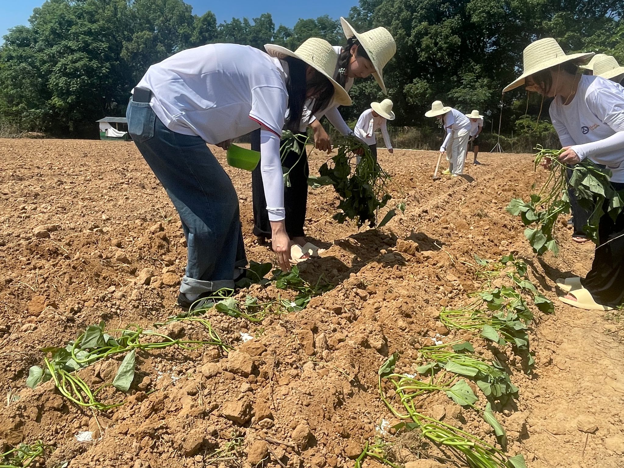 7月3日,美术与设计学院“星绘”志愿服务团走进当地小麻洲的农田,开展一场特殊的红薯种植劳动教育课。