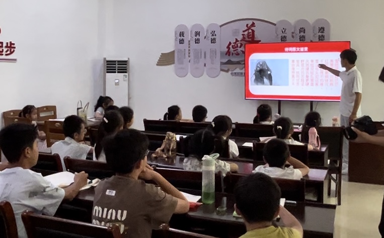 “大手牵小手”的红色之旅在苏区干部好作风纪念馆拉开序幕。斑驳的革命文物如无声史书,泛黄的影像资料似时光留痕,实践队员与当地学子一同触摸历史肌理,感悟革命先辈“半条被子见初心,一心为民践使命”的崇高风范。实践队员陈俊杰深有感触:“那些凝固在展品中的岁月,让课本上的文字化作滚烫的精神火炬,照亮我们前行的路。”