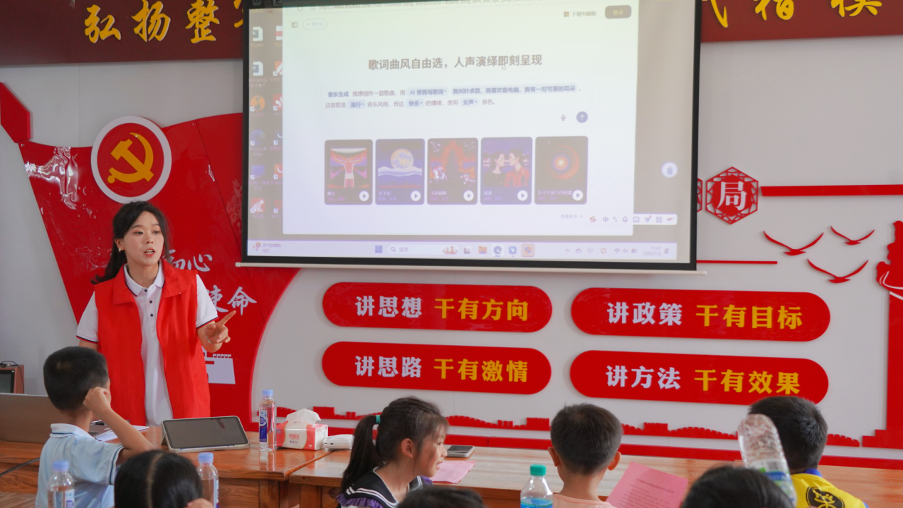 同时,实践团还充分发挥自身专业优势,开展了一系列丰富多彩的活动。他们精心组织文艺汇演,队员们用激昂的歌声、优美的舞姿,为乡村文化注入了源源不断的活力,让村民们在家门口就能享受到一场场精彩纷呈的文化盛宴;开设AI艺术体验课,将前沿科技与艺术教育巧妙融合,为乡村孩子打开了一扇通往新世界的大门,让他们领略到科技与艺术碰撞产生的独特魅力;深入实地调研乡村文化,挖掘乡村文化的深厚内涵,为优秀传统文化的创新发展出谋划策;拍摄助农微视频,用镜头聚焦乡村特色农产品,通过网络平台帮助村民拓宽农产品销售渠道,解决农产品销售难题。