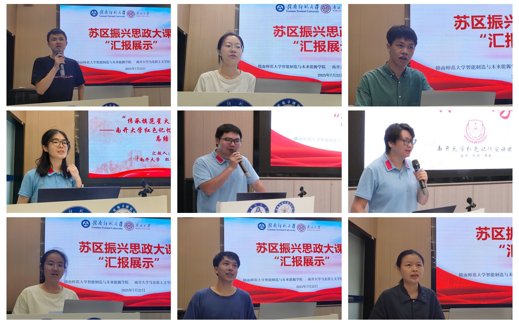 在成果汇报会上,同学们通过视频、数据图表、实物展示等形式,生动呈现实践心得。大家在调研中增长了见识,在交流中提升了境界。南开大学马克思主义学院刘一博老师说:"这是一次'思政小课堂'与'社会大课堂'的完美结合,同学们用脚步丈量苏区大地,用专业服务产业需求,用心灵感悟红色精神,实现了知、情、意、行的统一。"