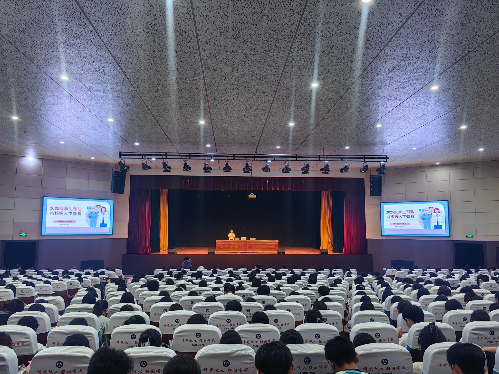 2025年9月25日晚,我校面向2025级新生举办的“开学健康第一课”专题讲座在人文科技中心演艺厅开讲。本次活动由校医院主办,特邀赣州蓉江新区疾控中心专家担任主讲,680余名新生代表到场聆听。
