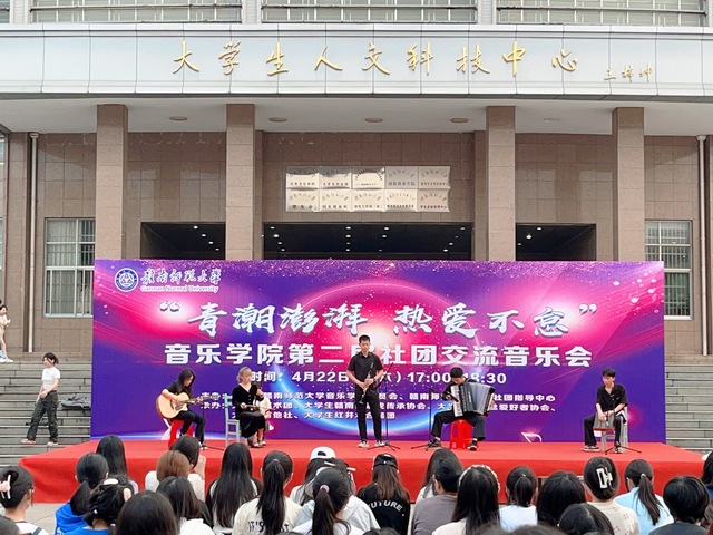 据悉,此次音乐交流会,由音乐学院主办,大学生艺术团、大学生吉他社、大学生赣南采茶戏传承协会、大学生葫芦丝爱好者协会以及大学生红井水合唱团联合承办,旨在弘扬社团文化,彰显青春风采,营造浓厚的校园文化氛围,为青年学子提供展示自我的平台。